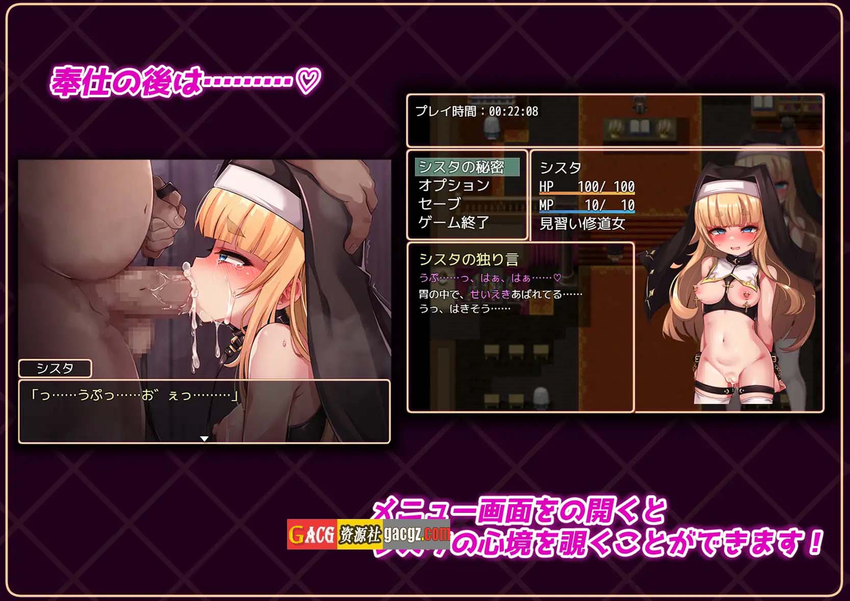 这是一款以修女、调教、渐进情色为主题的非战斗RPG。